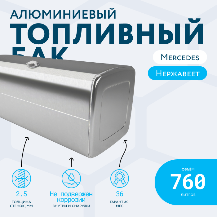 Алюминиевый бак не подвержен коррозии, что делает его более долговечным, а так же сбережет вашу топливную систему. Бак из алюминия в два раза легче стального бака, хотя он и изготовлен из листа увеличенной толщины в 2,5 мм. В конструкции предусмотрены цельные перегородки, которые проварены по периметру. Баки из алюминия так же оснащены заливной горловиной с самозапираемым непроливаемым клапаном (который становится барьером для разлива топлива, а так же становится защитой от попадания мусора в бак при открытой крышке) . Кроме того, однозначно что алюминиевый бак выглядит намного привлекательнее и дороже - где бак в том числе становиться и элементом тюнинга автомобиля. На алюминиеввые баки действует увеличенная гарантия - 36 месяцев.